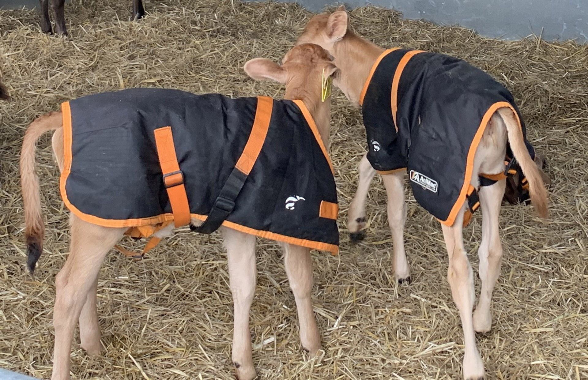 Jerseykalver med dekken: Når temperaturen går under 15 grader, har du god effekt av å kle på de minste kalvene. Foto: Lean Farming