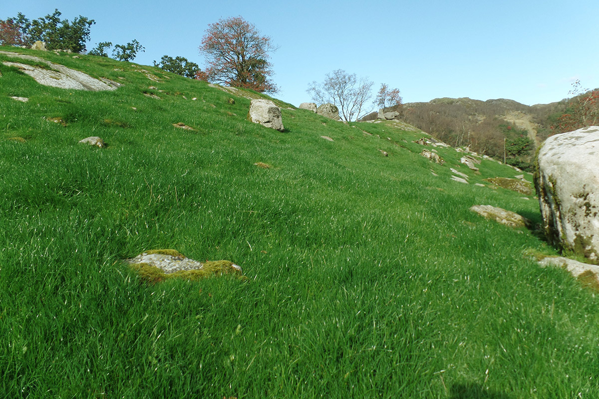 Yterike bakkar: Raigras- og rapsdominert beite med kløver sist i september.