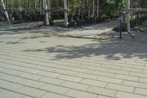 Det er særleg i samband med planteskuledrifta at betongsteinen har blitt brukt. Til gangvegar mellom planterekkene, kjørevegar og området framfor hallane. Totalt har dei steinlagt kring tre dekar.