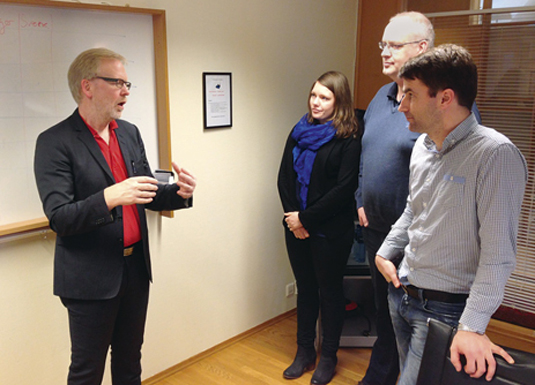Peter Hegelund, frå Jysk Kvæg, saman med rådgivarane Bjørg Granberg, Nortura, og Knut Erik Hagen og Torger Frøyland, TINE.