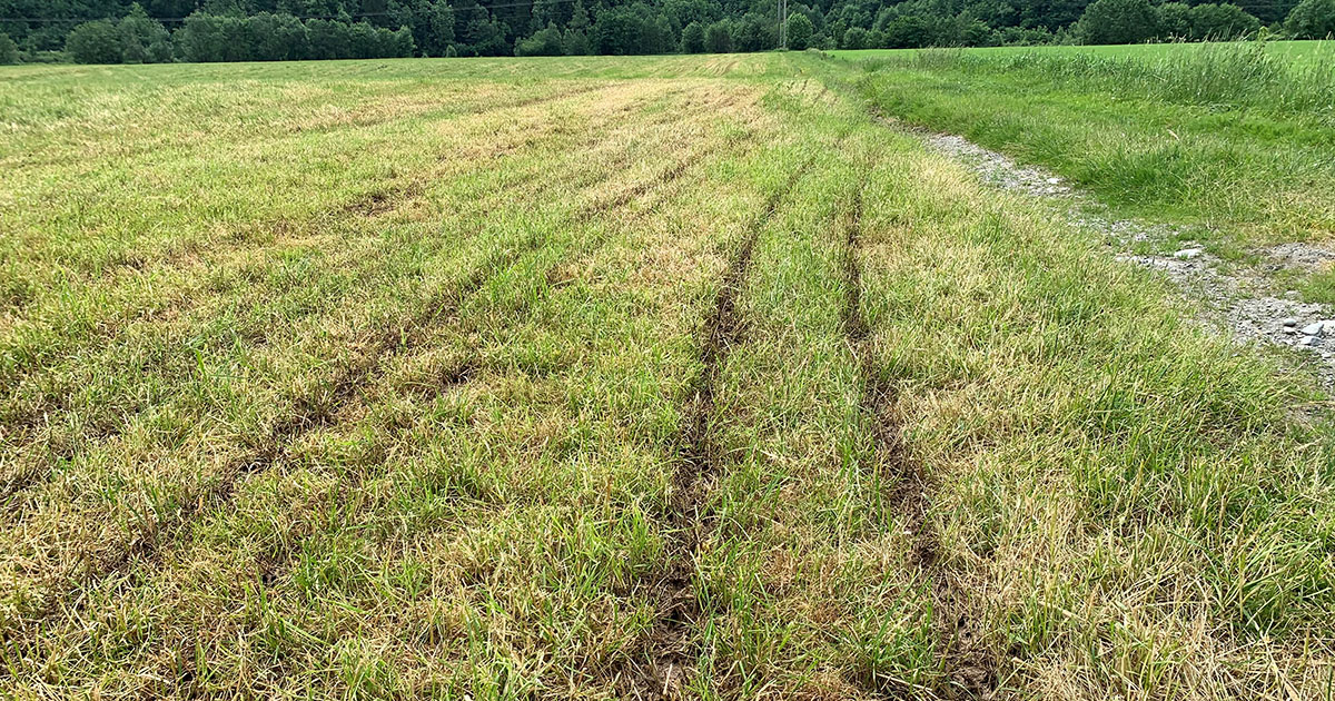 Tørt: Når en bruker stripespreier er det ønskelig at gyllen er så tynn at stripene flyter utover og går i hverandre.