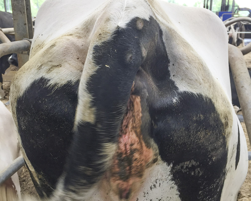6. Hvorfor vifter kua veldig med halen og har skabblignende sår på haleroten?