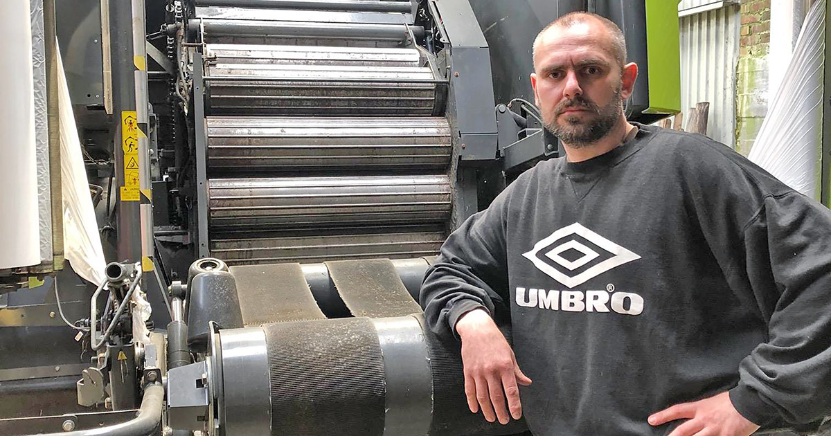 Blank presse: Øyvind Sveinulvson Ueland har vore med og testa ut eit nytt glukosebasert ensileringsmiddel frå Finland. Middelet har, i følgje Ueland, ført til at pressa framstår som blankare enn då ho vart kjøpt ny i 2017.