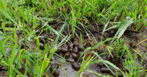 Noen på ferde: Nedgnagd eng – der synderen har lagt igjen visittkort. Foto: Mari Aker