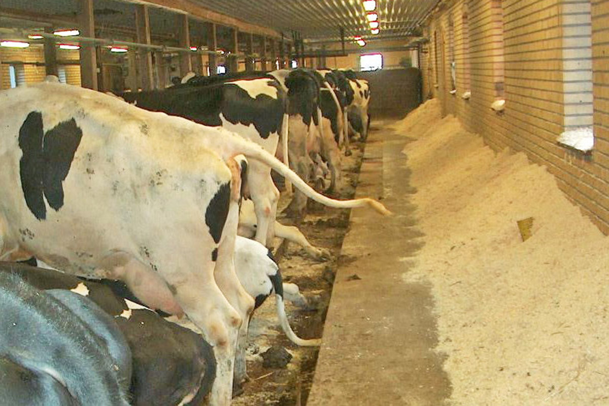 Ekstra arbeid: I dette fjøset blir sinkyr og kviger stallet opp. Omhyggelig bli spøne lagt inntil veggen – noe som utgjør en ekstra prosess og dermed svinn. Det er bedre å oppbevare spøne tørt og så finne en effektiv måte å få det inn i fjøset på hver dag.