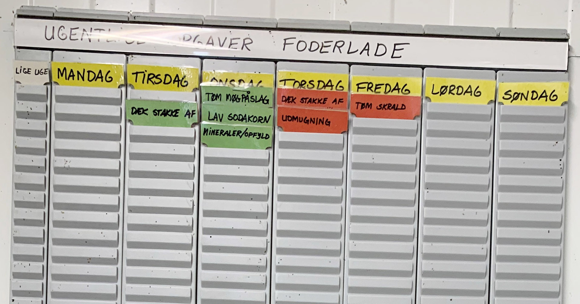 Spesialtavle: Denne tavlen brukes til spesielle oppgaver i fôrlageret. Foto: Lean Farming
