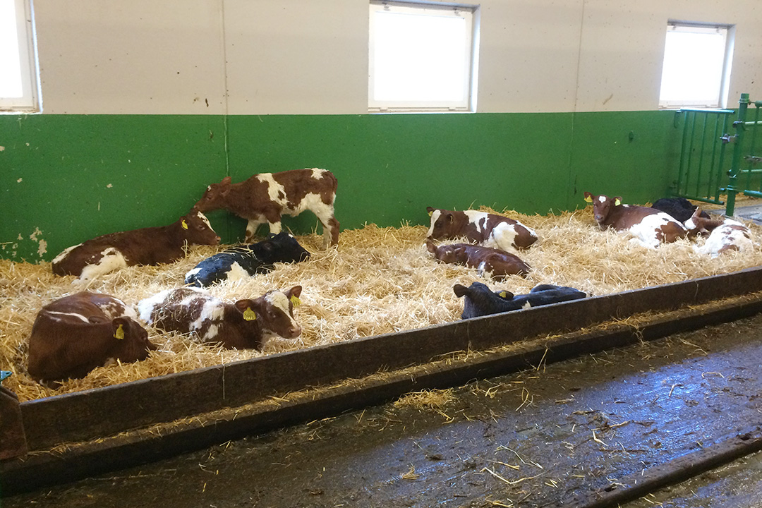 Kalvereir: Kalvene ligger på et godt underlag av halm som hjelper de med å holde varmen. Foto: Kay Arne Aarset