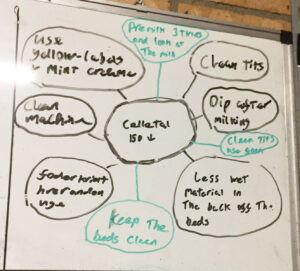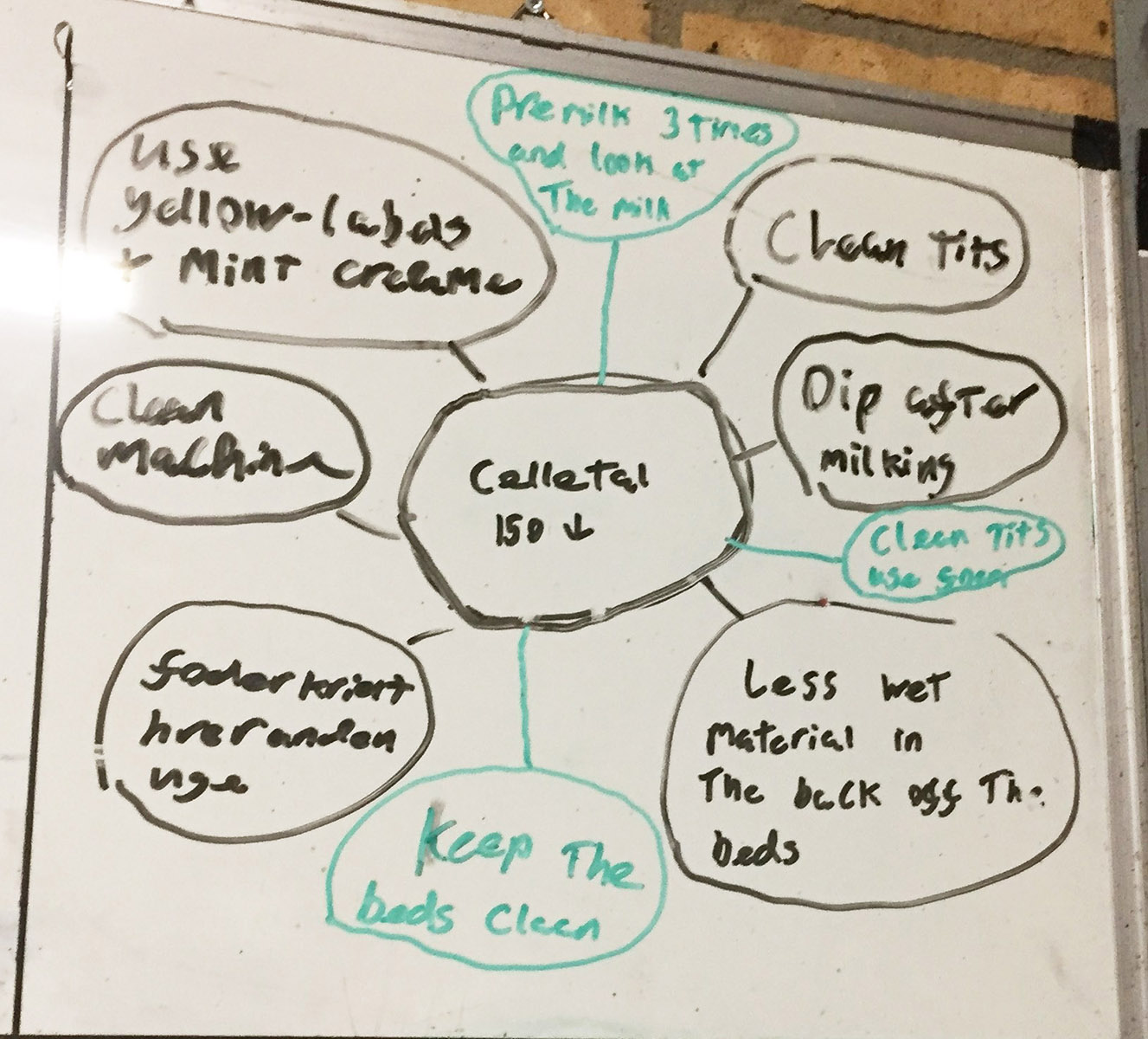 Helt skjematisk: Dette er et eksempel på en brainstorm som en dansk bonde hadde sammen med sine medarbeidere. Tema: Hvilke faktorer som påvirker celletallet i fjøset.