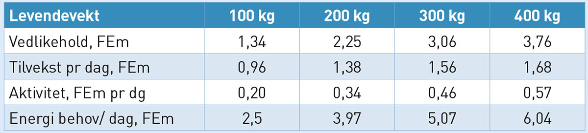 Næringsbehov til storfe på beite, tilvekst 1200 g pr dag