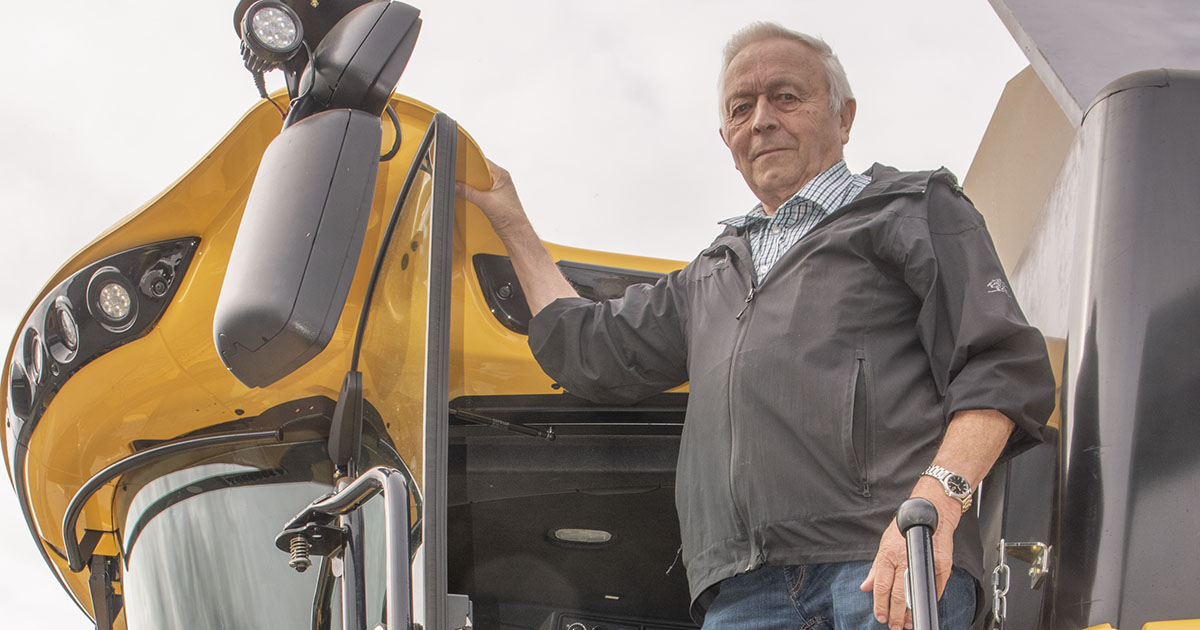 Glede: 2022-sesongen er på hell, men 80-åringen Terje Nedrebø tenkjer langsiktig og gler seg til mange fleire timar bak rattet i den nye skurtreskaren til neste år.