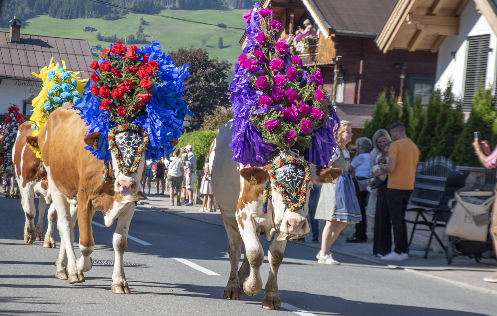 Her kjem me att! Kyrne i Tirol blir pynta med blomar, bilete og ulike symbol når dei skal ned og heim frå fjellet om hausten. Bygdefolk og turistar helsar dei velkomne.