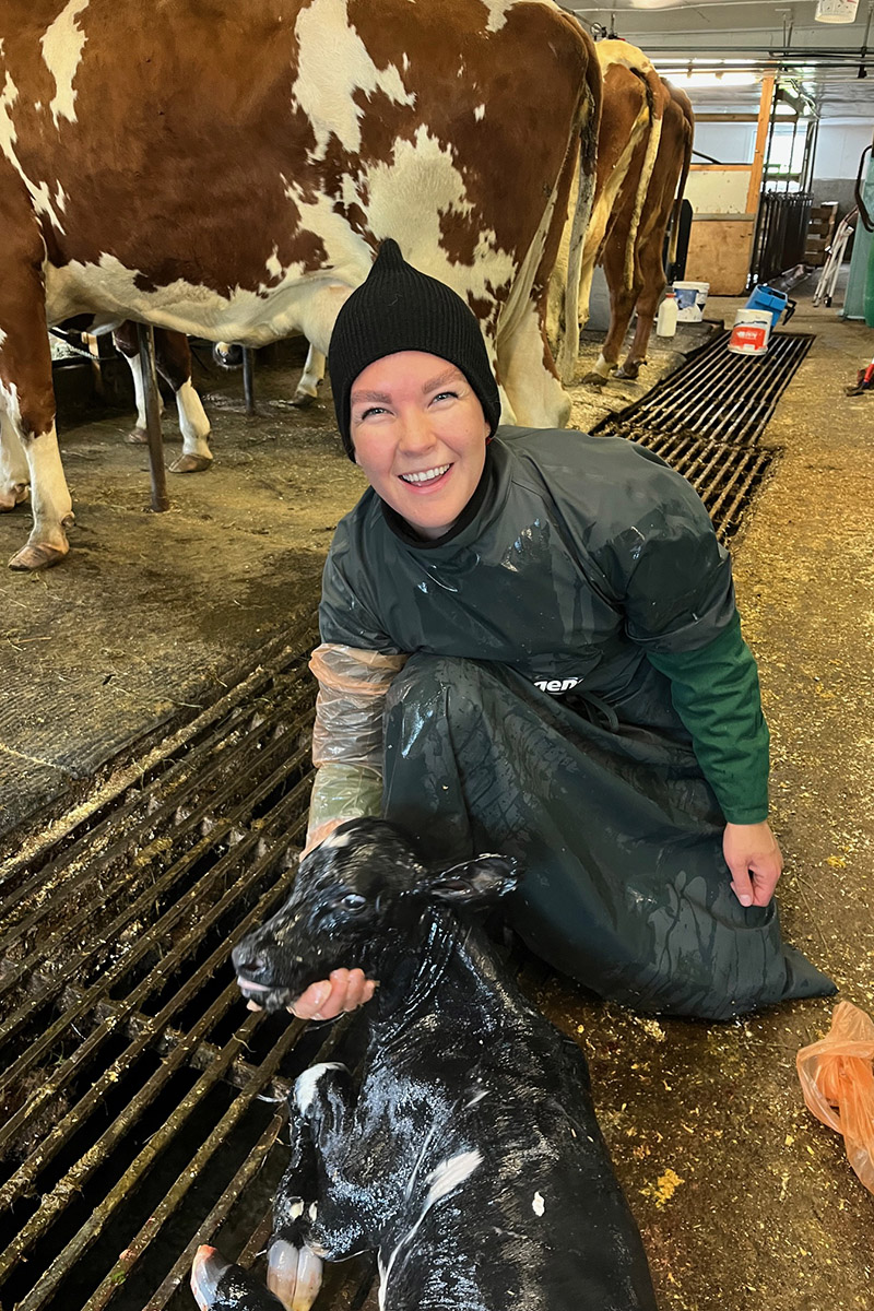 Vellykka fødselshjelp: Levande kalv, nøgd bonde og glad dyrlege.