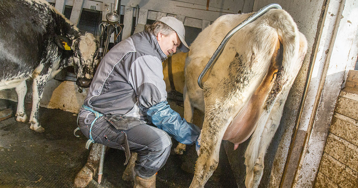 Jørn setter seg sakte ned, slik at beinet på krakken som er bundet bak på rumpa, får feste på gummimatta som kua Vanja står på. Han vasker spenene med våte, rene bomullskluter. Først en klut, så en til. Så en tredje. Helt til det ikke er noen mørke flekker på den hvite kluten. Produksjon med upasteurisert melk krever ekstrem oppmerksomhet. Han finner frem sammenrullet tørkepapir fra skjortebrystet, og tørker spenene før han fester melkeorganet.