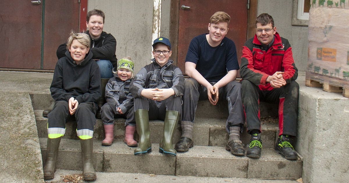 Heile familien: På Ombo-garden er heile familien i sving. Frå venstre: Rune, Ann-Mari, Leah Sofie, William, Per Kristian og Kenneth.