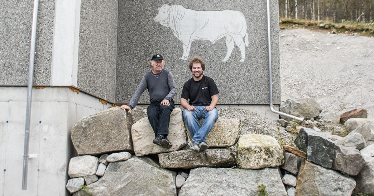 Tøff som satsar: Sebastian Schelbred tok over heimegarden i 2017, og bygginga av ammekufjøset starta året etter. – Eg synest han er tøff som satsar, seier far Sigve.