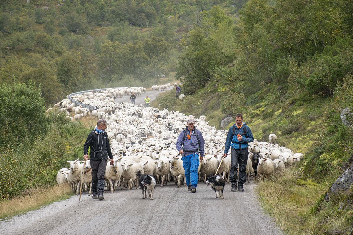 Sauer, hundar og folk i jamt sig nedover fjellsida og ut dalføra. Ein tørr sesong i fjellet er over. No skal flokkane heim og bøndene gjere opp status.