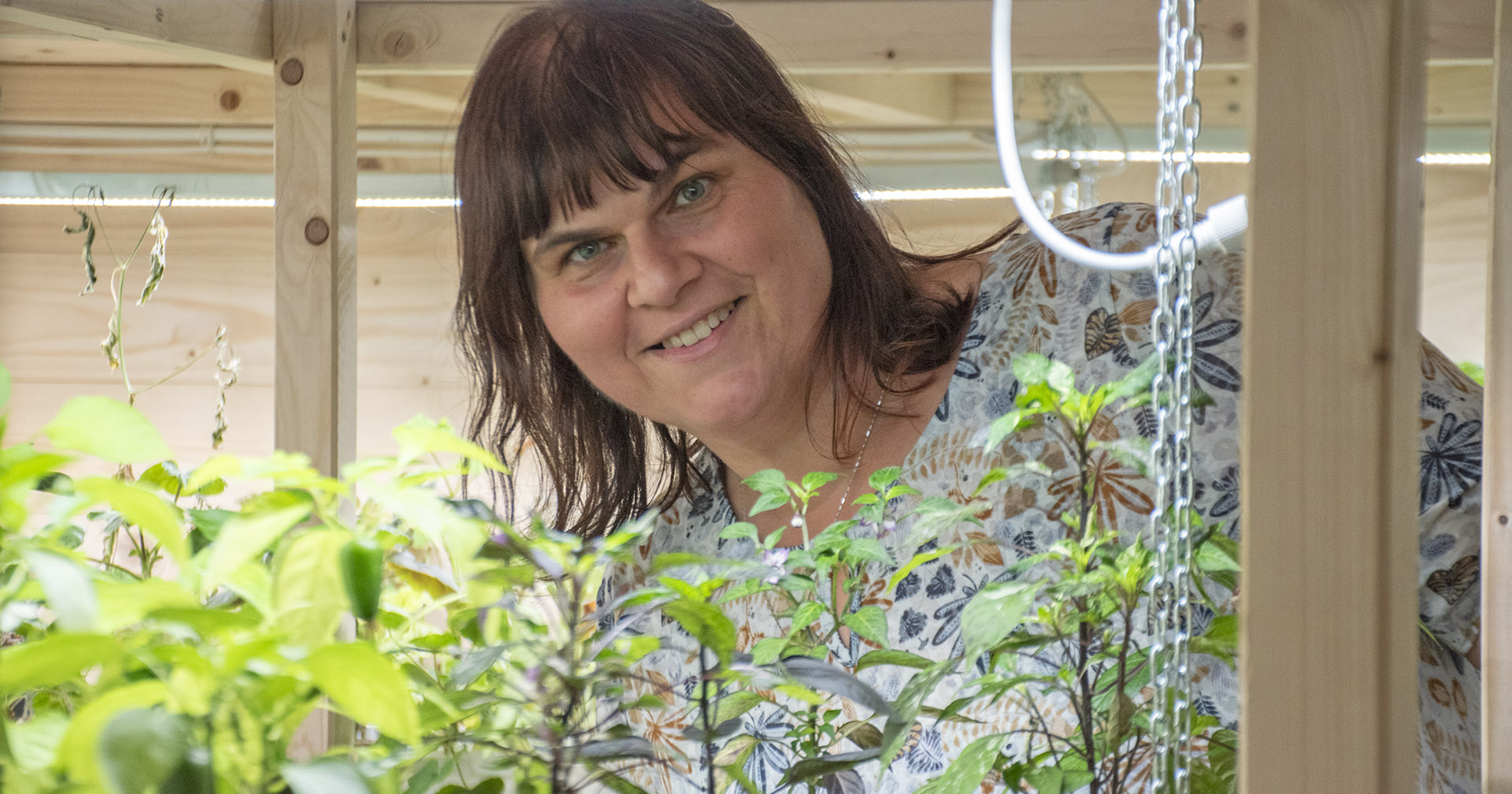 På kontoret:Planterommet har blitt bonden Tatyana sitt nye «kontor». Her bruker ho mange timar på å så frø og potte om, vatne og gjødsle, før plantane blir planta ut i drivhuset.