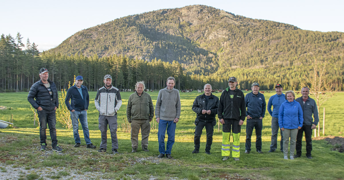 Fellesskap: Det er ein festdag når mjølkekyrne blir send opp til Gjøvdal. Bøndene samlast for eit grillmåltid for å sparke i gong beitesesongen. Frå venstre: William Henningsen, Tellef Honnemyr, Tor Anders Skaiaa, Nils Olsbu, Peder Bjormyr, Tom Løland, John Øina, Erik og Kåre Gunnar Fløystad, og Elibieta og Jòzef Mrozik. Tellef Eieland var ikkje tilstades då biletet vart teke.