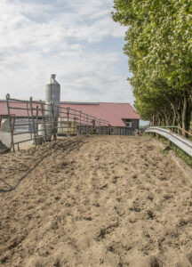 Mjuk vandring: Kvar sommar stenger dei av med mobile gjerde og lagar ein drivveg dei 60 metrane frå fjøset til beitet. Her fyller dei på med to lass fin strandsand slik at det blir mjukt og godt for kyrne å gå på.