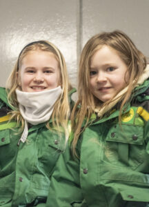 Kjekt i fjøset: Alice (t.v.) og Tiril synest det har kjekt i fjøset etter at dei fekk mjølkekyr. Kua Lily og kviga Skittle er Tiril sine favorittar, medan Alice har Bambi (bilete) og kalven Mais som sine. – Det er måten dei oppfører seg på, seier ho. Jentene er med å gir dyra mjøl, kostar inntil fôret, måker ut or båsane og strør. Og Tiril har funne ut korleis ho skal flykte unna når dei blir for pågåande. – Eg måtte hoppa i vindauget, seier ho.