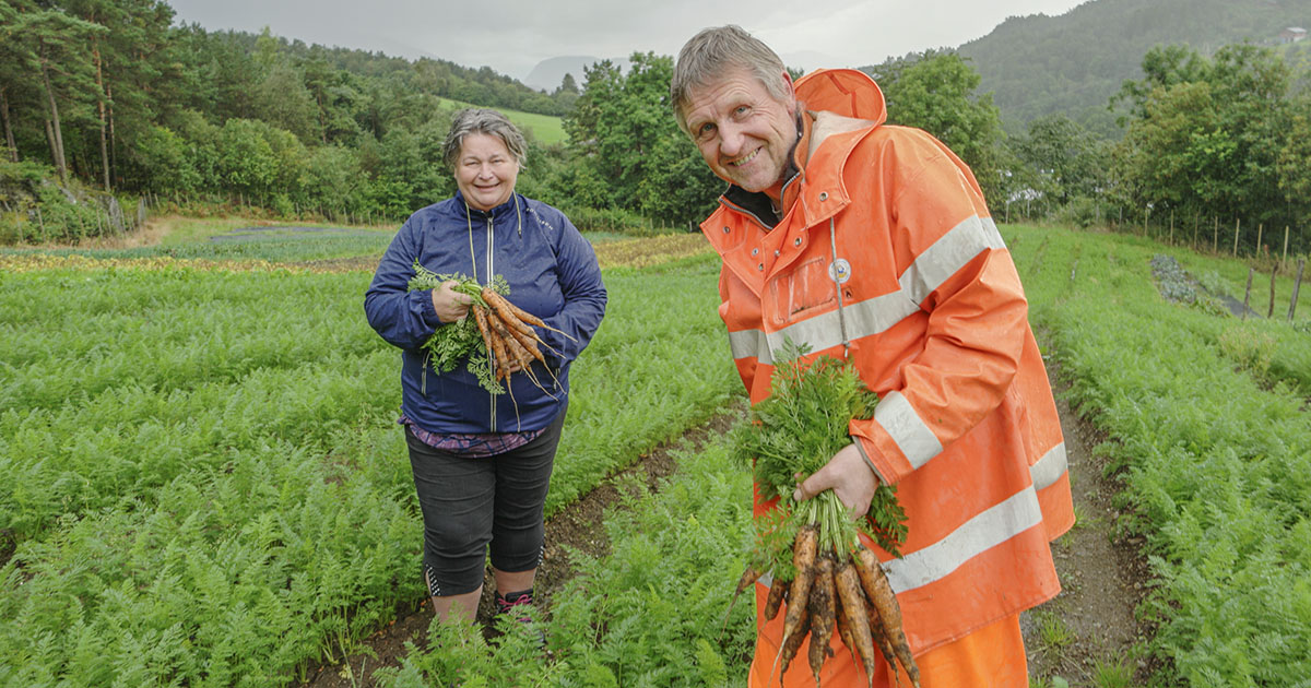 Under omstilling: Sigrid Karin og Gunnar Dolve er glade for valet dei tok om å satse på grønsaker då dei måtte avvikle pelsdyrhaldet.