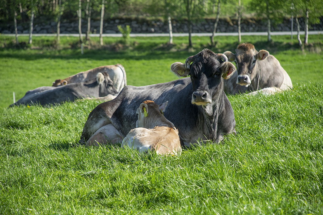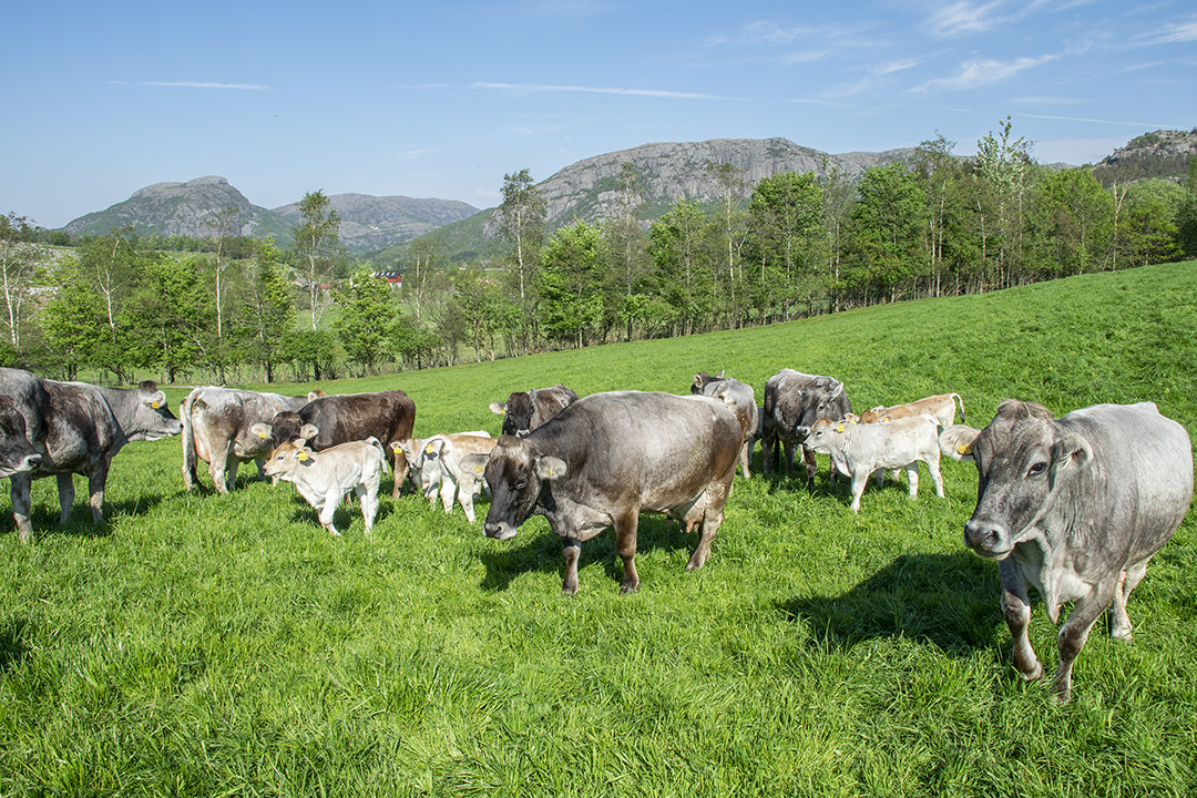 Ny satsing, gammal rase: Då dei la om drifta på garden, ville bøndene også satse på ein rase som passa garden betre. I dag har dei kring 20 mordyr av rasen Tiroler Grauvieh.