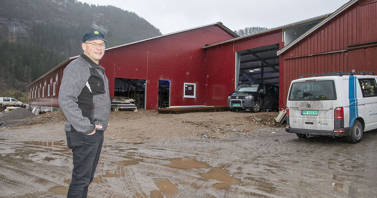 Åge Gyland er ein glad bonde, som smilar mykje. I desse tidene smilar han ekstra brett. Om få veker skal eit flunkande nytt mjølkefjøs takast i bruk.