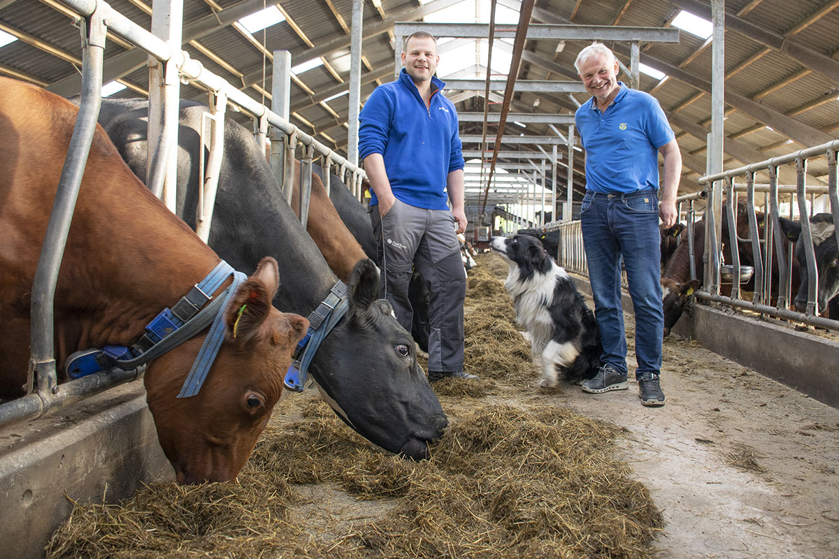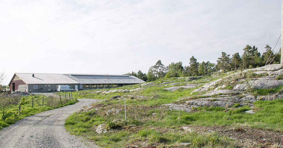 Carl Peder og Tor Erlend er svært nøgd med at dei valde uisolert fjøs med gardiner. Det gir mykje lys og luft – og fin utsikt. I tillegg var dei nøye på plasseringa av det 1800 kvadratmeter store bygget. Styrt kutrafikk vil dei heller ikkje gje slepp på.