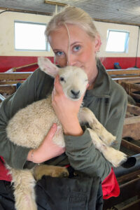 Morsbån: Villsauen lemmer sjølv, men Ken Rune har dei inne for å ha tilsyn og gi lamma ein best mogleg start. Yngstedotter Lina er lærarstudent, men ofte med i fjøset når ho er heime. Her med eit NKS-lam. Begge foto: Privat