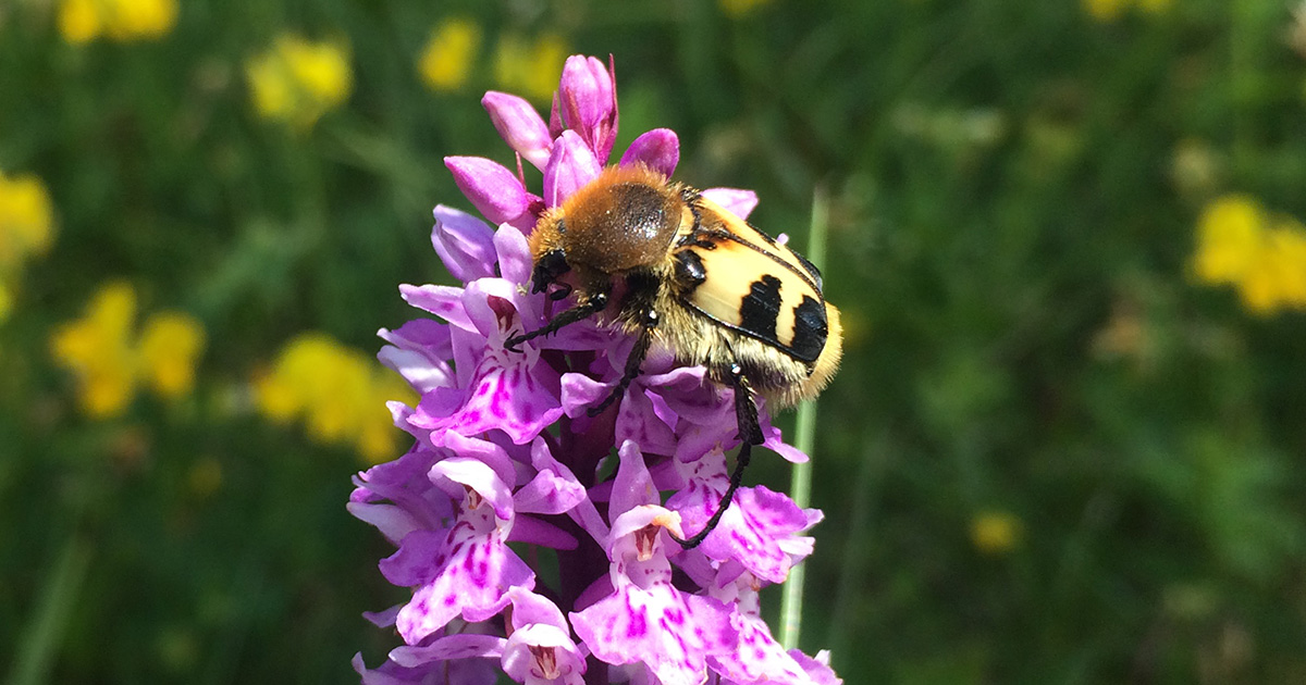 Vilt og vakkert: Humlebille på Skogmarihand. Foto: Helene Lind Jensen/Sabima