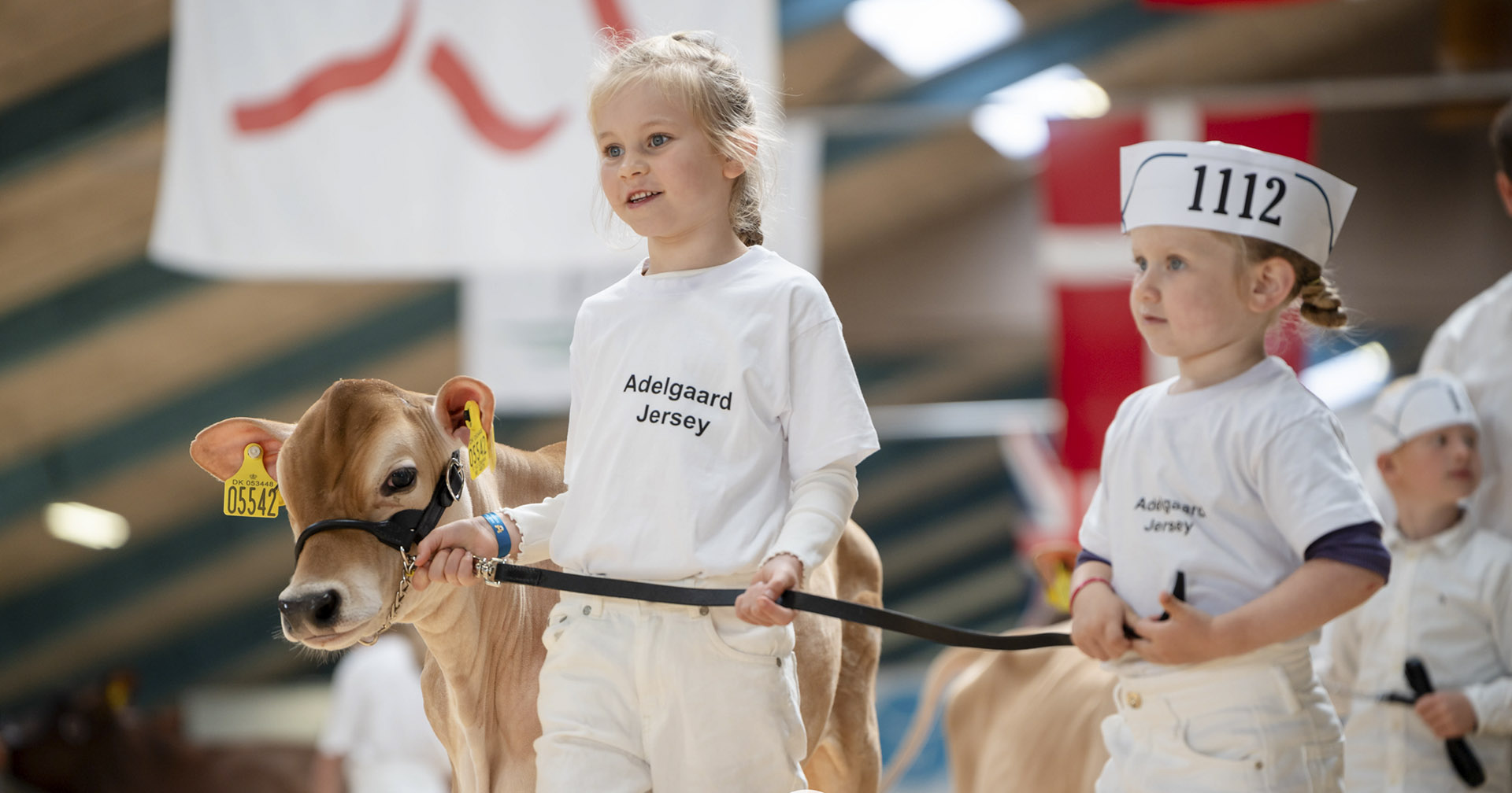 Går i arv: Barnebarna til Vagn og Gitte, Ida og Ellen, mønstrar kalv under Landsskuet i Herning. Foto: VikingDanmark
