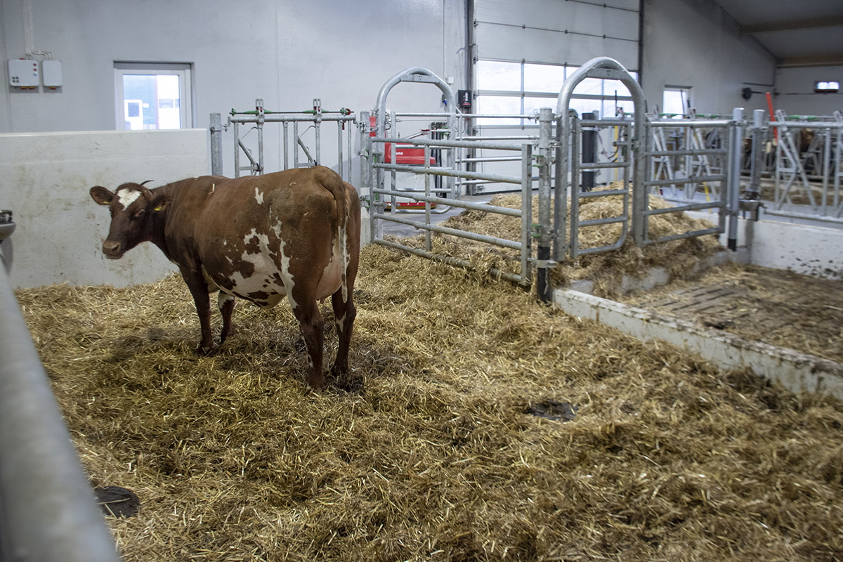 Kalvingsbingen: Då dei bygde ut fjøset etter brannen investerte dei i ein romsleg kalvingsbinge. No har dei ikkje lenger problem med diare på kalvane.