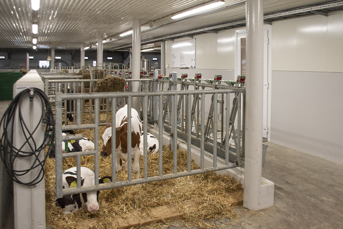 Fjøs båsfjøs til kalvefjøs: Kalvane er oppstalla i halmbingar i det som fram til 2017 var båsfjøset.