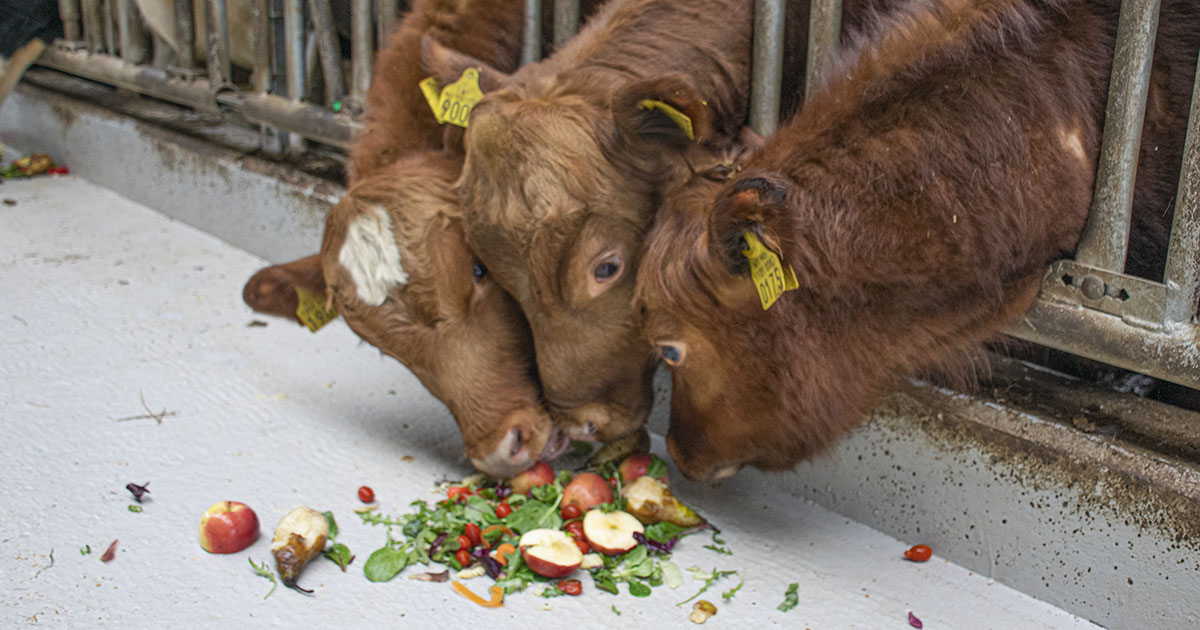 Variert meny: Gras er hovudretten, men oksane av Vestlandsk raudkolle takkar ikkje nei til eit fargerikt måltid frå den lokale matbutikken.