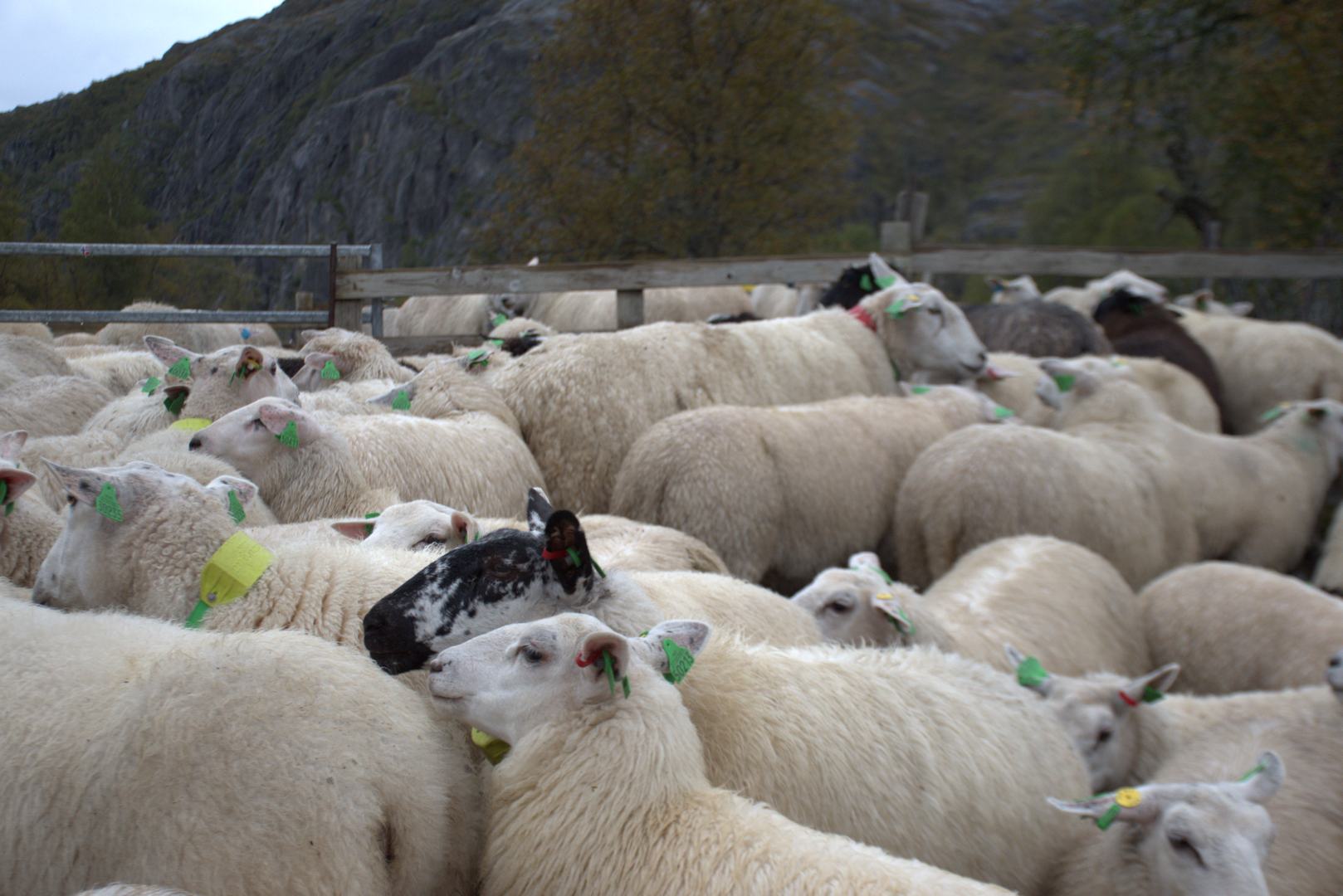 Søndagen er det meir sanking, medan nokon blir att på hegna for å vege lam før slaktebilen kjem. Dei unge bøndene kjenner området ut og inn, har trakka her sidan dei var små. Leita etter sau i timesvis.