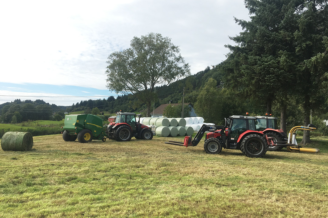 I vår gjekk samdrifta til innkjøp av singelpresse og pakkar for å vere meir fleksible i slåtten.