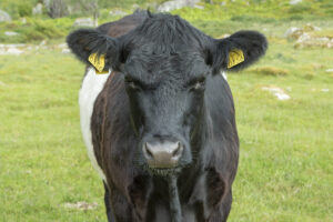 Galloway: Mindre kvote frå neste år skal erstattast med auka kjøtproduksjon på Galloway. Denne unge NRF/Galloway-kua fekk sin første kalv i vinter.