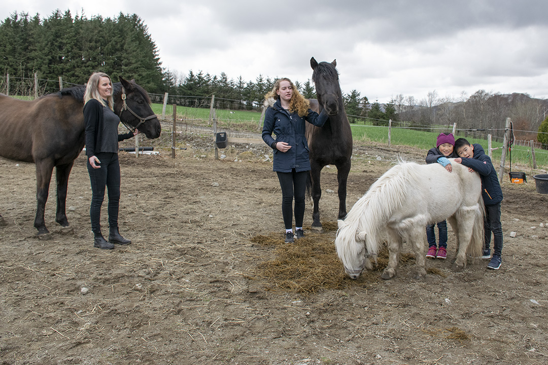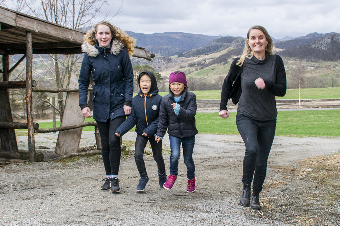 Ho har eineansvar for dei tre barna Therese (18), Daniel (11) og Hedda (9), og familien har tre hestar.