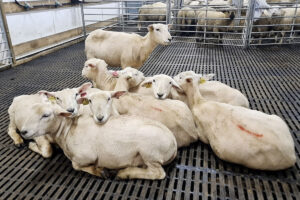 Trygge i lag: Påsettlamma er vanlegvis aktive, men her har dei teke seg ein kvil.