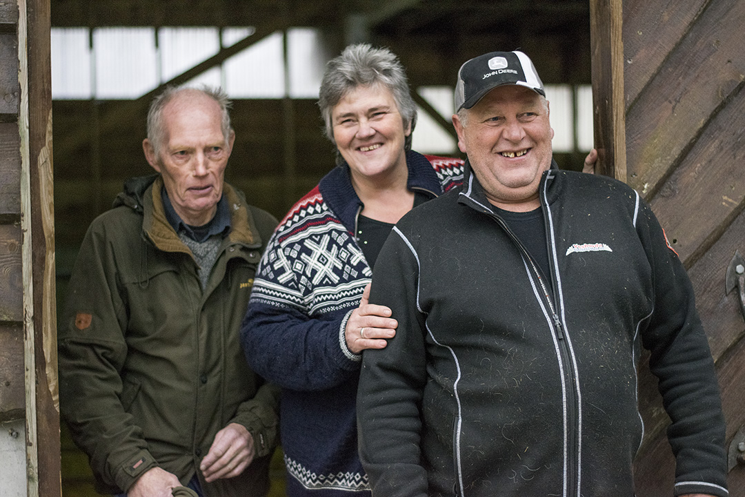 Visjon: Desse tre har eit felles mål om å dele kunnskap om rimeligare landbruksbygg med så mange som mogleg. (F.v.) Lars Bog, initiativtakar til prosjektet «Narvebygget», Astrid Brommeland, bygdeutviklar i Suldal, og Svein Narve Veshovda, bonden som har prøvd ut bygget i praksis i fleire år.