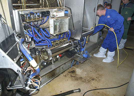 Ja, det er svært tidkrevende, men grundig og rett vask, desinfeksjon og opptørking mellom to innsett reduserer smittepresset og gir bedre resultat i produksjonen.