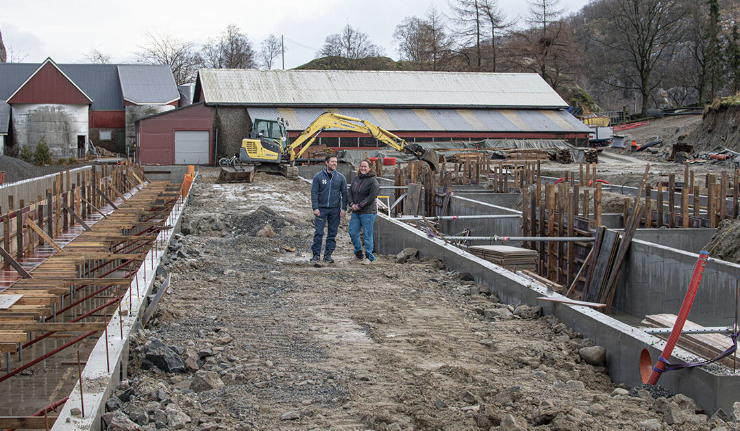 Gro og Thore bygger lausdriftsfjøs der minkhusa ein gong stod.