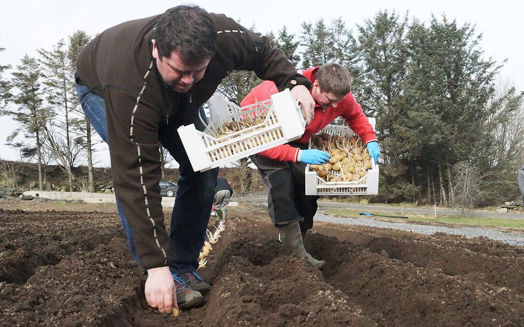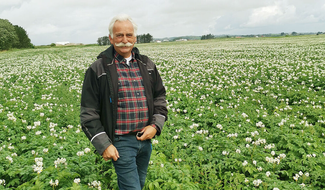 – Det ser helst godt ut, seier Arne Vagle, medan han går og vassar i potetriset saman med ein gjeng bønder.