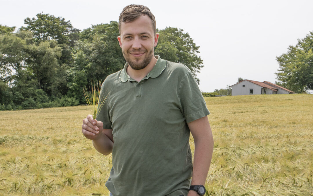 Det fastslår Henning Røyneberg der han står i byggåkeren i sommarvarmen heime på Røyneberg i Sola og konstaterer at skuronna er i kjømda og at kornåkrane står fint i Sør-Vest.