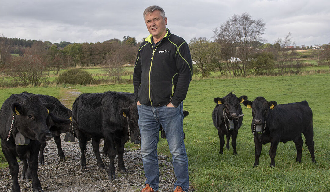 Jan Egil Skjørestad har erstatta mjølkekyrne med kjøtferasen Dexter. Dei ivrige små dyra et det dei får fatt i. Ikkje ein gong lyssivet får stå heilt i fred.