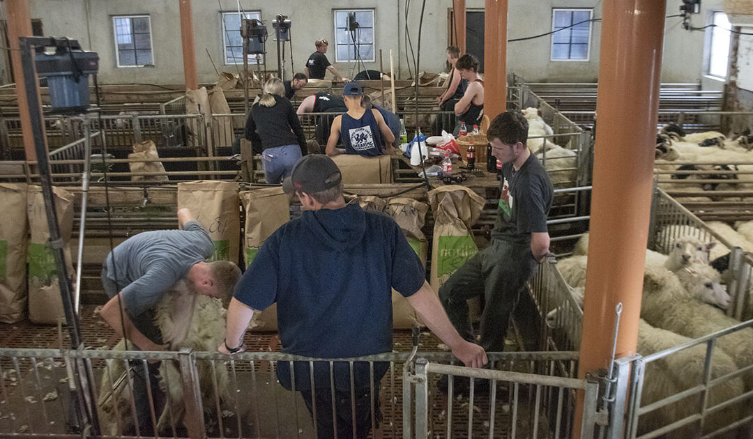 167 søyer og lam og fire vêrar skal klippast. Tonje og Atle Kloster har fått profesjonell hjelp frå Kjetil Torland, som har klipt sauer i 25 år.