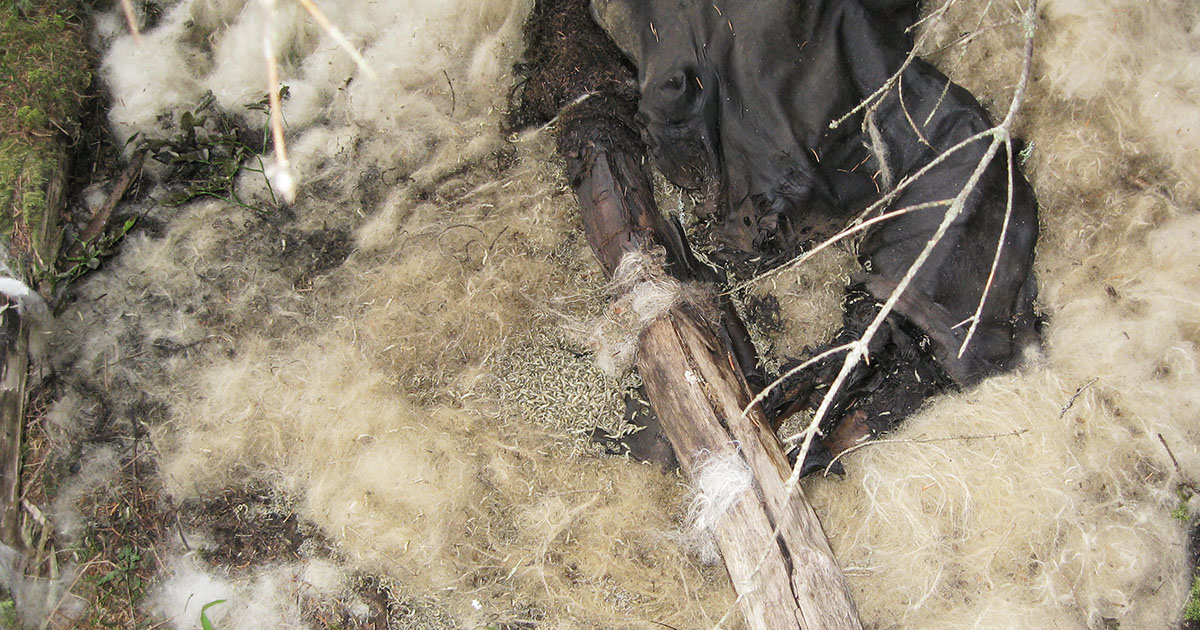 Dramatisk utfall: Kadaver vil på eit tidspunkt alltid verte angripne av larver, og ein kan ikkje sikkert seie om dette er dødsårsak eller naturen sin måte å rydde opp på. Foto: Vibeke Tømmerberg, Animalia
