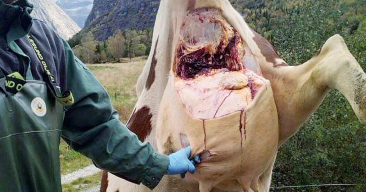 Ikkje vent!: Du må kontakta veterinæren med ein gong dersom eit dyr har vore ute for ei ulukke, som til dømes ein speneskade. Foto: Karin Johnsen.