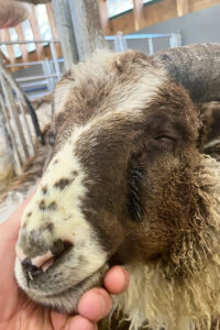 Typisk milde eller tidlege symptom: Det renn blankt frå auga. Lammet knip att auga for å verne seg mot lys og lindre smerte. Foto: Jon Kristian Høyum
